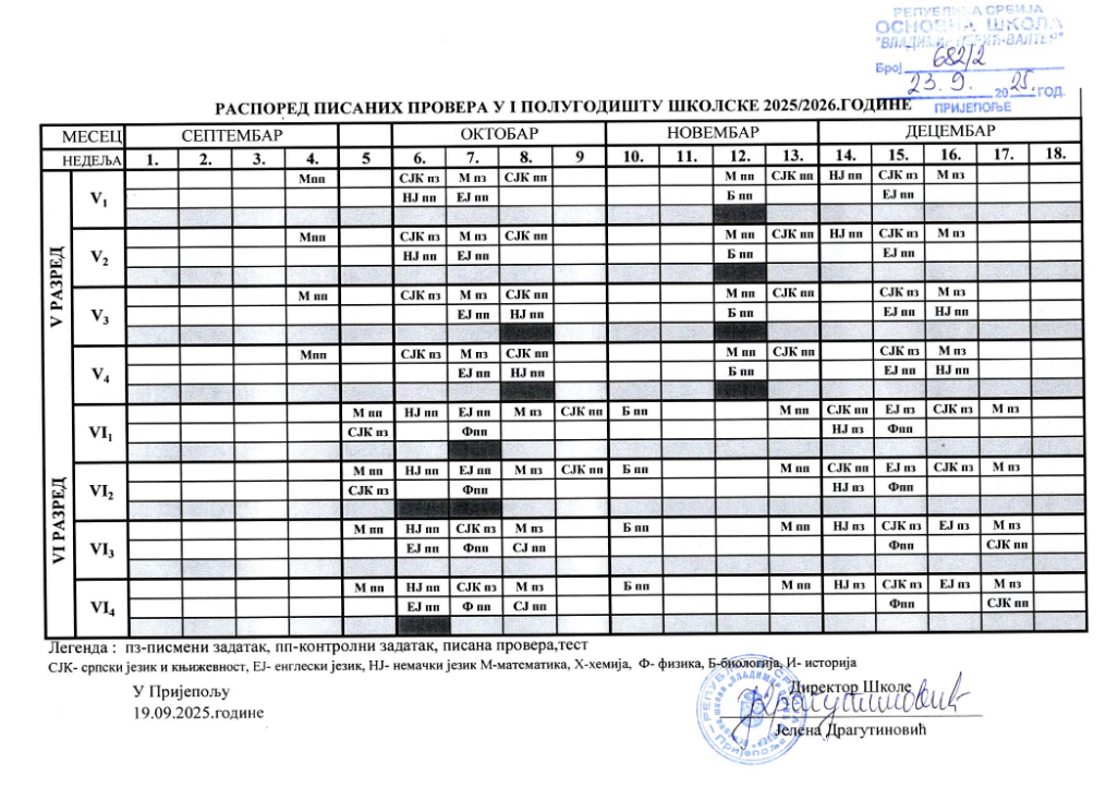 Распоред писаних провера од V до VIII разреда Друго полугодиште школске 2025/2026. године V и VI разред VII и VIII разред
