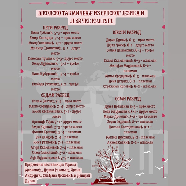 Педесет ученика 6. разреда данас је ходало кроз природу око 3 сата и прешло маршруту од 8 км: Бегов мост – Хисарџик (џамија и средњовековни град Милешевац) – манастир Милешева. Ученике су водили наставници Ирена Андрејић и Денис Спахић, а Read More …