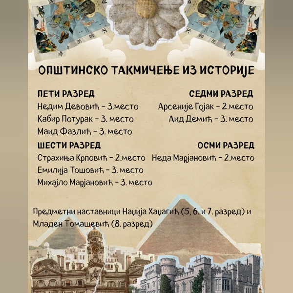 Општинско такмичење из историје одржано је данас у ОШ „Бошко Буха“ у Ивану.